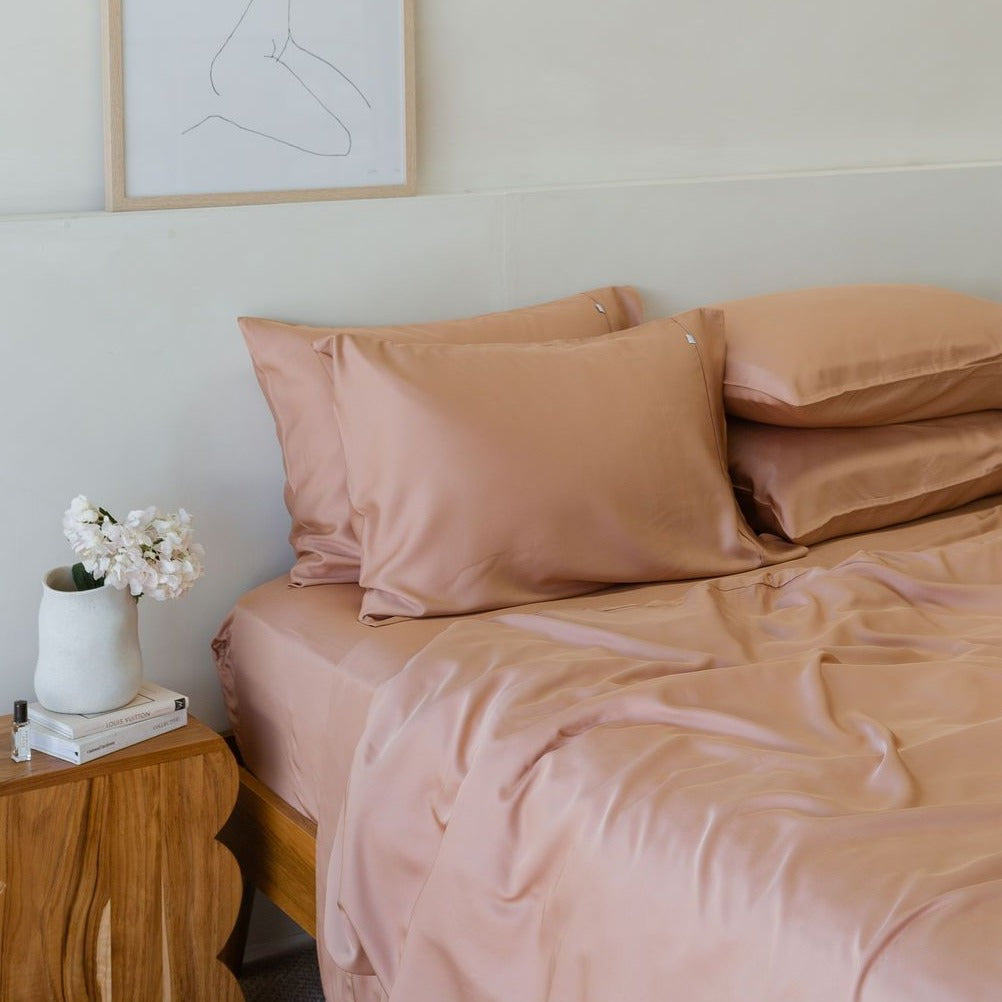 Rest easy knowing our fabric is crafted sustainably from the finest organic bamboo. These sheets are the ultimate sleep companion. With a sateen weave to create a smooth, luxe texture, wrap yourself in these ultra-soft sheets for the best sleep you’ve ever had.