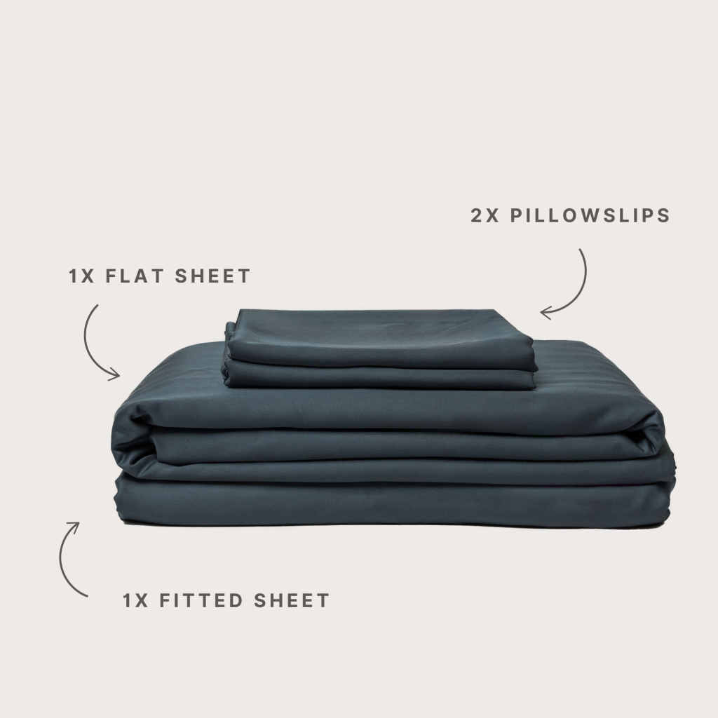 Single & King Single sets include; 1x fitted sheet, 1x flat sheet, 1x standard pillowslip.