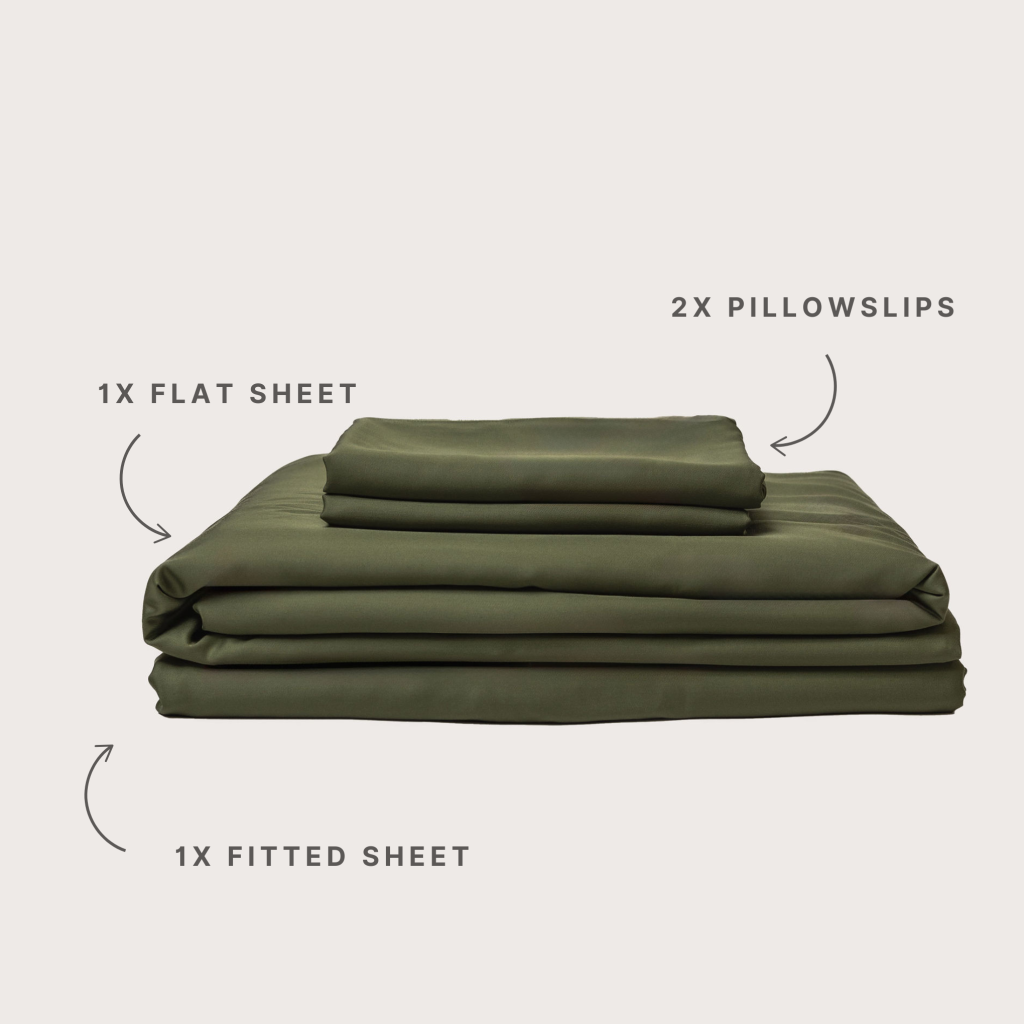 Single & King Single sets include; 1x fitted sheet, 1x flat sheet, 1x standard pillowslip.